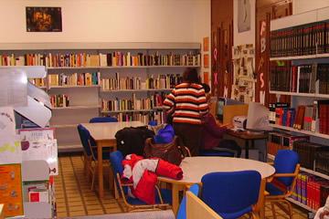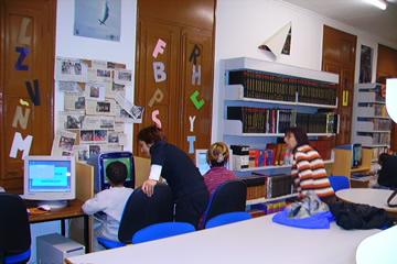 En la biblioteca se puede encontrar una gran variedad de libros. Nuestro fondo bibliográfico ronda los 9.000 ejemplares, además se puede hallar: hemeroteca, videoteca en diferentes formatos y temáticas, música y otro tipo de materiales como por ejemplo diapositivas, juegos de CD-Rom...